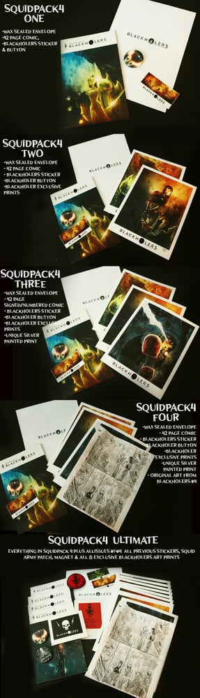 Grab just the book or one of the special wax sealed Squidpacks with prints, stickers, patches, buttons and original art limited to this special edition.