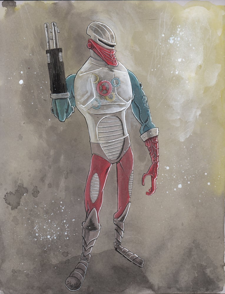 8.5x11 done in pencils, inks, acrylic inks & paint on paper.